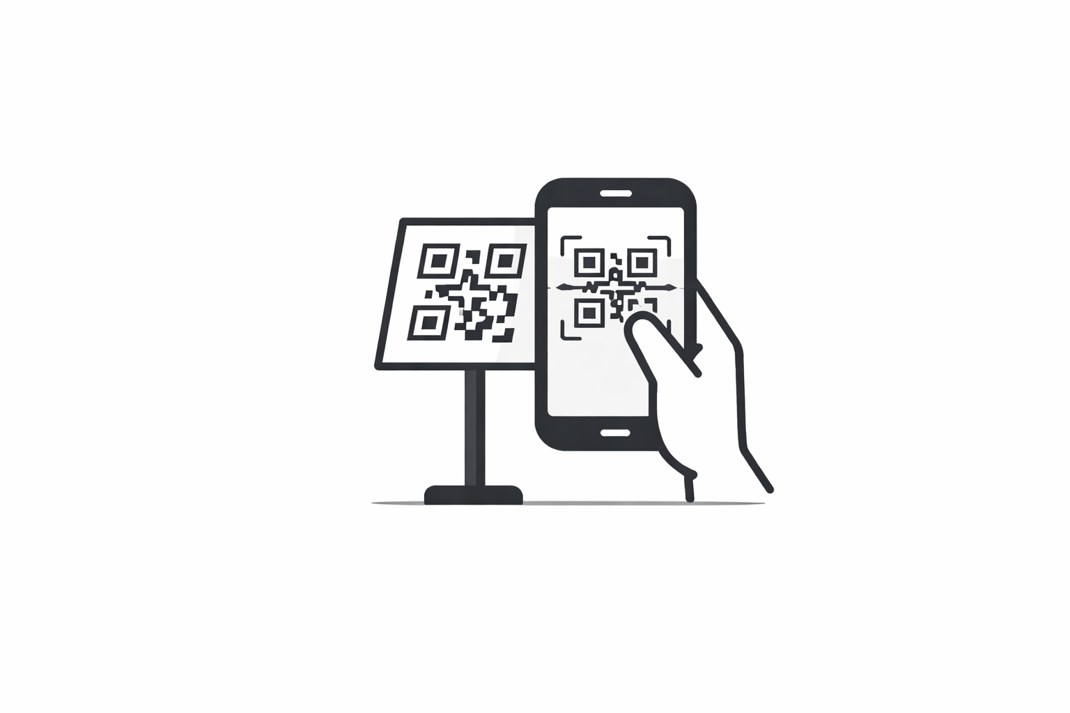 Customers scan a QR code or tap a button on the app.